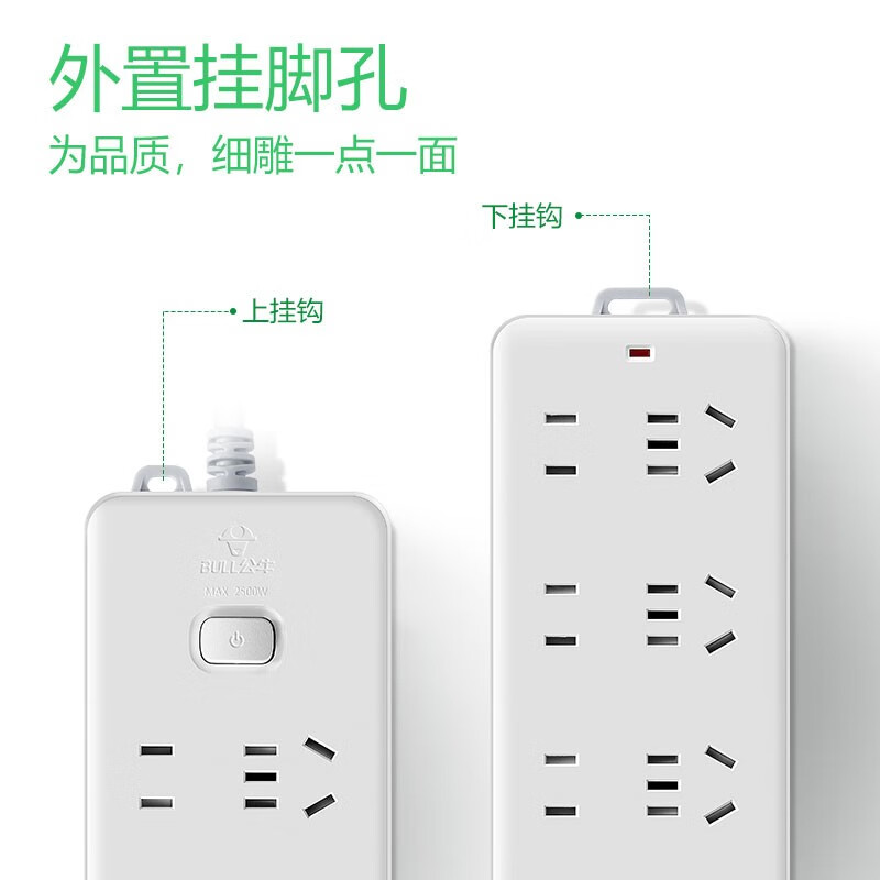 公牛插座 多孔长线多功能电插板 分控开关 8位【总控】5米 GN-403