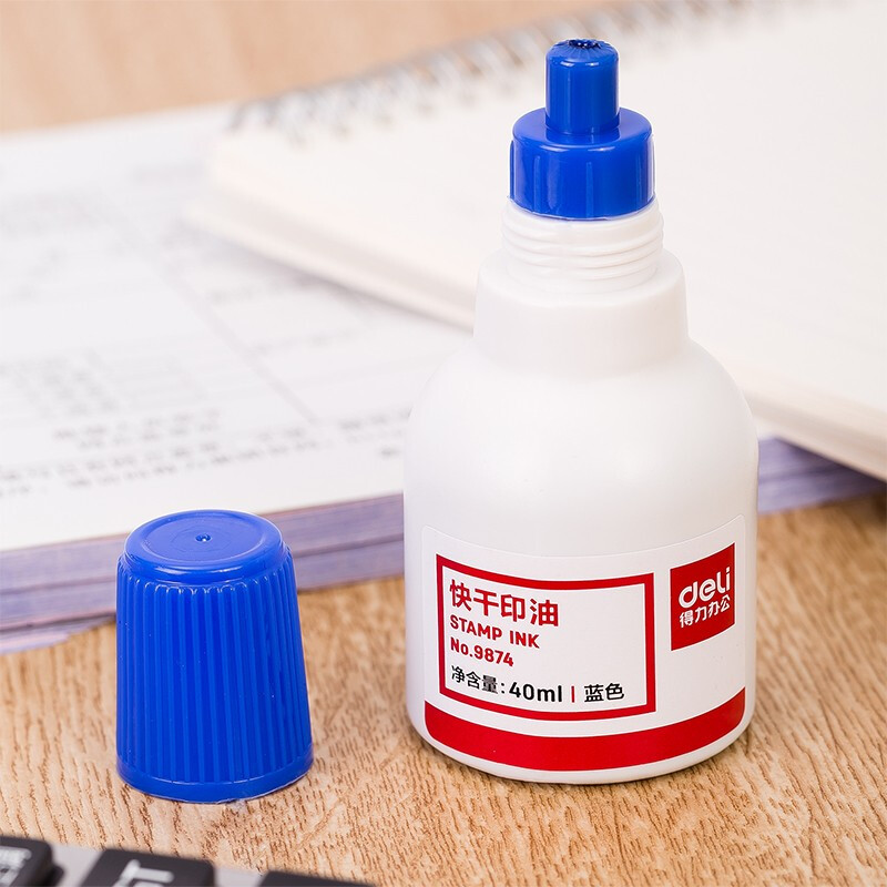 得力(deli)40ml财务印章快干清洁印油印泥 财务用品 办公用品 蓝色9874