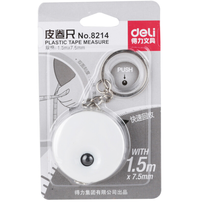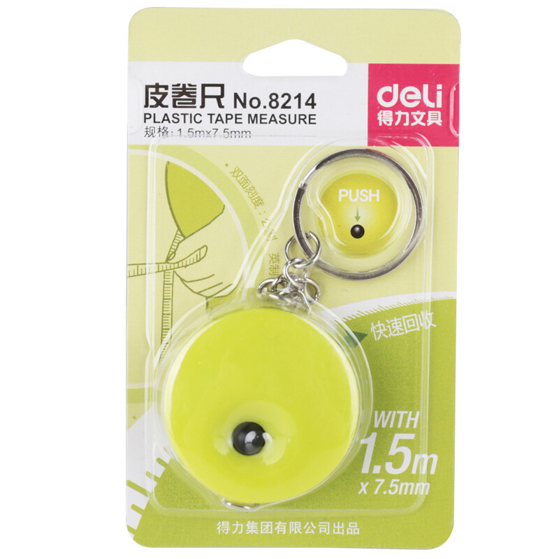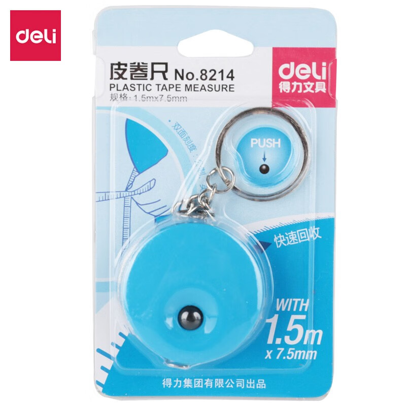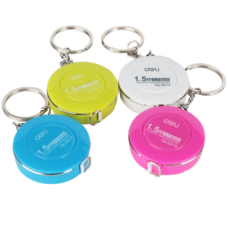 得力(deli)8214皮卷尺迷你便携小卷尺1.5米钥匙扣小皮尺 颜色随机