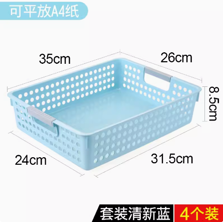 塑料篮筐A4收纳框文件篮 (蓝色/4个装)