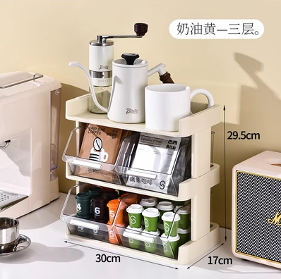 茶包收纳盒胶囊咖啡 三层置物架(奶油黄)