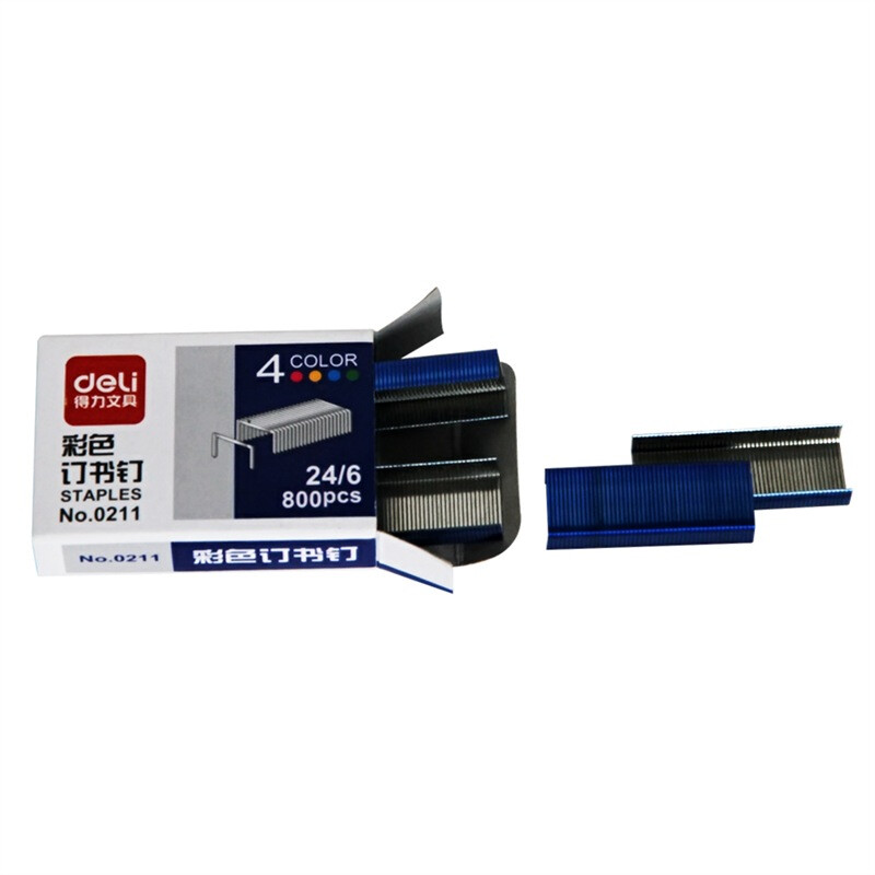 首页 > 办公文具 > 桌面文具 > 订书针/起钉器 > 得力(deli)24/6(12#)彩色订书钉/订书针 800枚/盒 10盒装 办公用品 0211