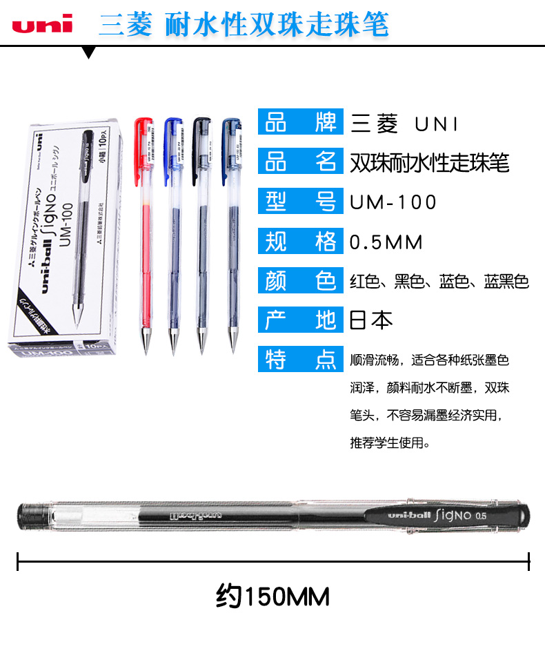 三菱(Uni) UM-100(黑)盖帽式中性水笔